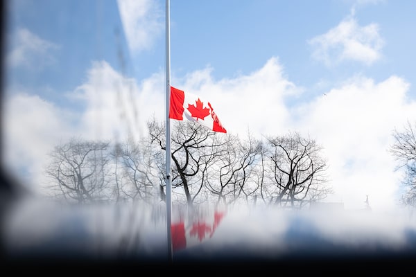 The Canadian flag hangs at half-mast at the legislature in Victoria, B.C., on Feb. 11.CHAD HIPOLITO/The Canadian Press