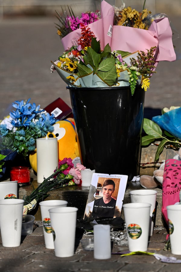 A memorial on the steps of the town hall in Tumbler Ridge.Jennfier Gauthier/Reuters