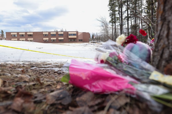 Flowers are laid in Tumbler Ridge the day after the mass shooting.JESSE WINTER/The Globe and Mail
