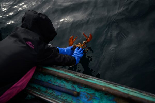 Mr. Paul and Mr. Robinson, along with lobster handlers Nikita Paul and Kaitlin Marr and deckhand Evan Dennis, have been working together since September. They move quickly as each trap is hauled onboard, throwing undersized lobsters back and marking females before returning them to the sea, practices that help conservation.