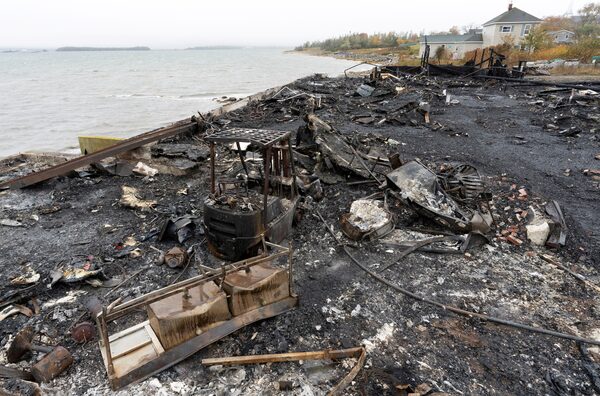 A forklift lies in the charred remains of the Middle West Pubnico pound.John Morris/Reuters