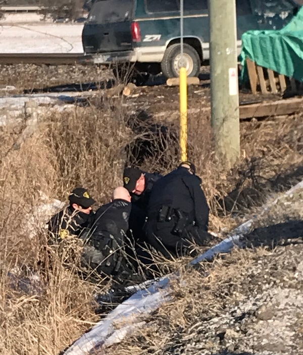 By late afternoon, protesters regrouped near the scene of the morning’s skirmishes, keeping a safe distance from police flanking the tracks. Supporters joined protesters, many bringing food, firewood and cases of pop. “I’m just here to support my people,” said Len Maracle, a 63-year-old resident of Tyendinaga.