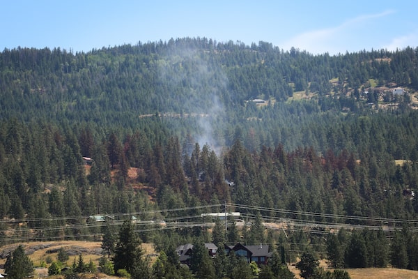 Smoke billows from a small wildfire burning in a neighbourhood near the Kelowna International Airport in B.C.Aaron Hemens/The Globe and Mail