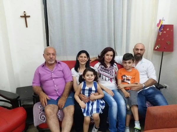 The Dali family fled the conflict in Syria and are in Lebanon hoping for a chance to come to Canada. From left, Aftinios Dali, 60, Solange Hajjar, 52, Solange Dali, 5, Maral Hartunian, 32, Aftinios Dali Jr., 10 and Aboud Aftinios Dali, 35.