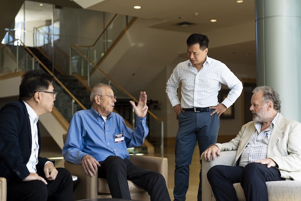 From left, Concord Pacific CEO Terry Hui, 2019 Nobel Laureate Jim Peebles, venture capitalist and former president of Electronic Arts Paul Lee, and UBC professor of condensed matter theory Phillip Stamp meet during a conference to promote a new Quantum Gravity Institute in Vancouver on Aug. 16.Jimmy Jeong/The Globe and Mail