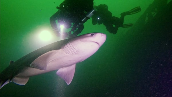 He briefly lost sight of the creature but it reappeared around the wreck. The group trained cameras on it, capturing what they say is incredibly rare footage of a shark not usually seen in shallower waters.