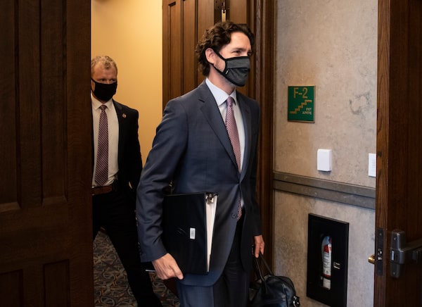 Prime Minister Justin Trudeau arrives in the foyer of the House of Commons for a meeting of the Special Committee on the COVID-19 Pandemic in Ottawa, on May 27, 2020.Justin Tang/The Canadian Press