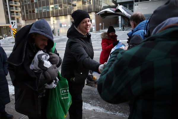 It’s a December Saturday morning so cold even gloved fingers go numb after 10 minutes, and Shawna Thibodeau is handing out bags filled with socks, pocket warmers and protein bars to the people spending their holidays on Ottawa’s streets.