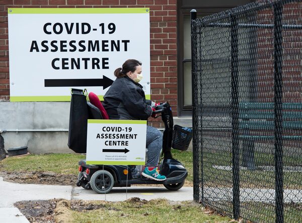 A woman arrives at the COVID-19 assessment centre at the Michael Garron Hospital in Toronto on March 24, 2020.Nathan Denette/The Canadian Press