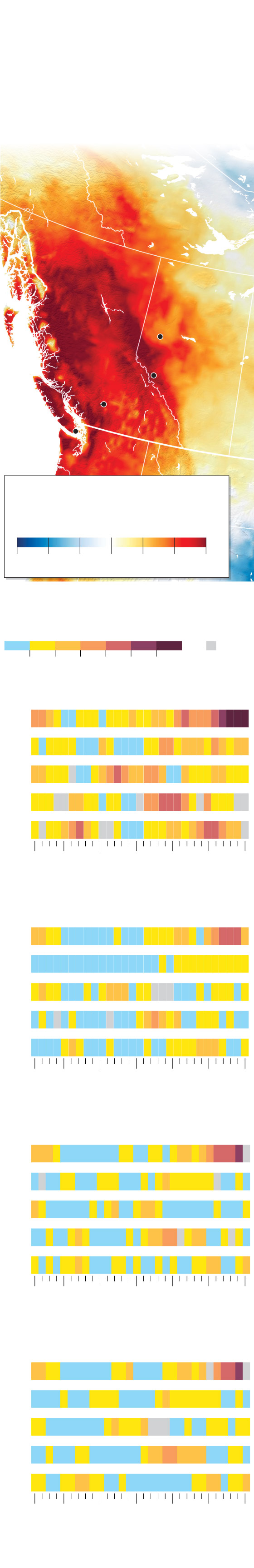 A one-day snapshot of temperatures across Canada last week reveals that the western heat wave was an extraordinary departure from what is typical in the region at this time of year.