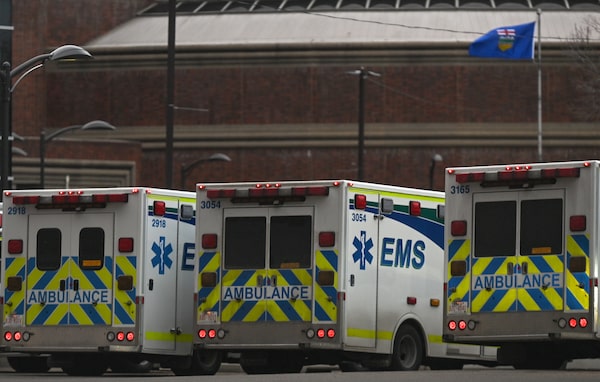 Ambulances seen outside the Emergency Department at Edmonton's Walter C. Mackenzie Health Sciences Centre on May 12, 2022.Artur Widak/Reuters
