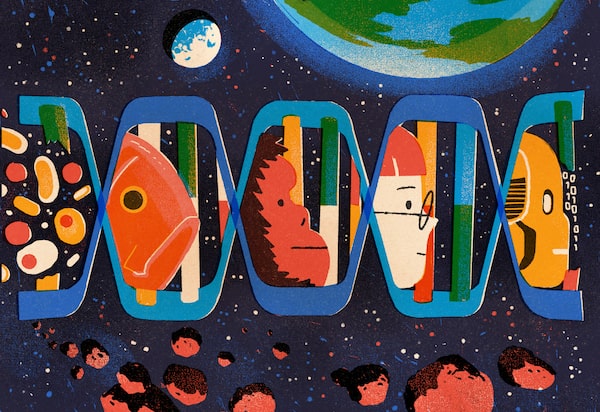 There are many other processes responsible for the long ascent from matter to homo sapiens. Life emerged tentatively from non-living matter, very likely aided by asteroids striking a turbulent, chaotic Earth. What began as self-organizing molecules slowly acquired memory, agency, and, eventually, consciousness.