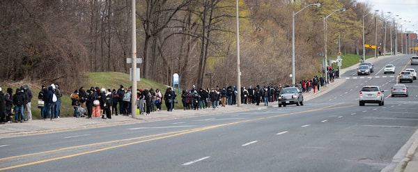 Arriving early for a portrait assignment at a pop-up vaccination clinic in Scarborough, Ont., on April 22, I noticed the long line of people waiting to get in. With COVID-19 vaccinations available, but in short supply and high demand, upward of a thousand or more people lined the sidewalk hoping to get into clinic outside the Warden Woods Community Centre. Scenes such as this illustrate the inequitable roll out of the vaccines, as some don’t have access to reliable internet, or can’t afford to take time off work. The clinic only had 500 doses on hand so some people had to be turned away.