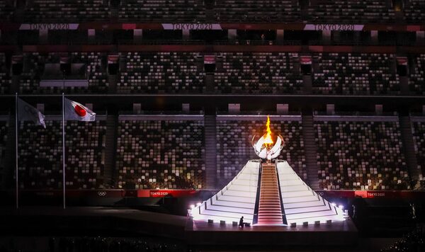 Tennis player Naomi Osaka, who represents Japan, lit the cauldron to open the Tokyo Olympics at an empty Olympic Stadium on July 23. The empty seats made some of the defining images of a Games held during a worldwide pandemic. About a month before the opening ceremonies, all spectators were banned from the Games because of concerns around COVID-19.