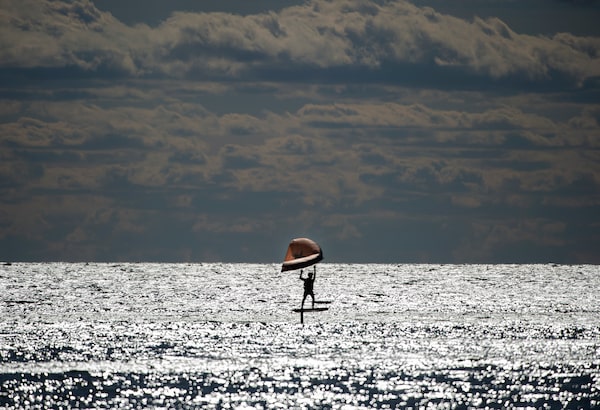 On quiet days with few assignments, I’ll often head out looking for standalone photographs. On this November day, the winds were very gusty, so I headed down to Cherry Beach, a popular spot in Toronto where wind surfers and foilers can often be seen. With feature photos that don’t have an accompanying story, I have more options to find photos that aren’t very literal and can look for something a bit different compositionally. Here, the fact that the foiler was at some distance wasn’t a problem, as they were one small element in the overall composition with the afternoon light and darker clouds.