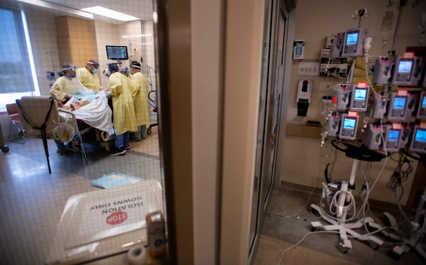 For a story written by health writer Kelly Grant, we had access to the COVID-19 unit at Brampton Civic Hospital on May 25 to report on the results of proning patients to help with their ventilation. On the left, staff members attend to an ICU patient after they were turned from a prone position onto the supine position. On the right is the equipment needed to take care of and monitor the patient. What has been difficult to convey during the pandemic (because access to hospitals has been difficult to get) is the extraordinary effort health care professionals have performed to keep patients alive.