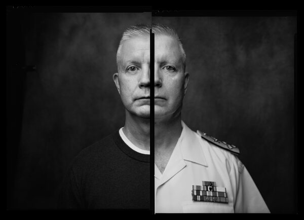 For an assignment to photograph a portrait of Admiral Art McDonald in September, I had an idea that this would be a good task for my 5x7 large-format field camera. To illustrate the dual realities the Admiral was facing as he took leave from his duties as chief of the defence staff of the Canadian Forces, I photographed him dressed in casual civilian clothes, and also wearing his uniform. To ensure the composition matched as closely as possible, I taped a spot on the floor for him to stand on. I then captured one side of McDonald, before he changed clothes so I could photograph the opposite side.
