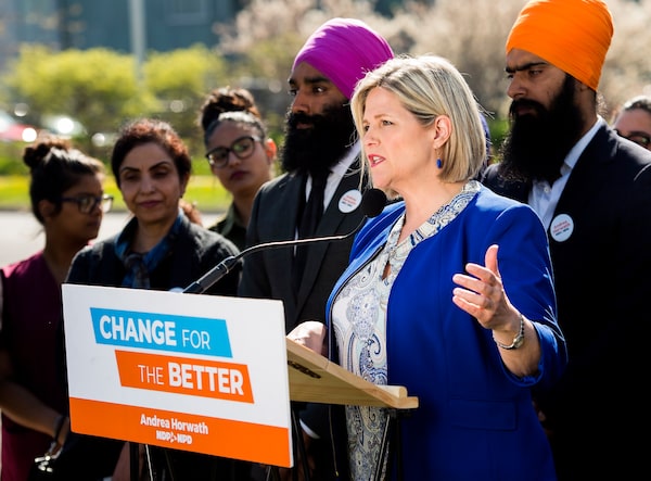 May 14: NDP Leader Andrea Horwath makes a campaign announcement on health care in Brampton, Ont., part of the suburban 905 region where Ms. Wynne is fighting perceptions that she doesn’t care enough about non-Torontonians.Nathan Denette/The Canadian Press