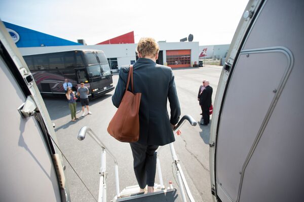 Another flight on a chartered plane brings Ms. Wynne to Thunder Bay for a rally with candidate Michael Gravelle.Fred Lum/The Globe and Mail
