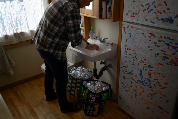 Bags of used medicine bottles rest under the sink as Colin Guthrie washes his hands before preparing Callum's first round of medication.Darren Calabrese/The Globe and Mail