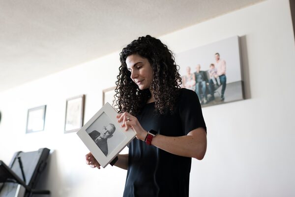 Gabriela Gonzalez holds a photograph of her late father, Lazaro Gonzalez, in her mother's home in Toronto. A public-affairs consultant, she was one of several who told The Globe about the emotional labour of juggling full-time jobs and caring for a loved one.Christopher Katsarov/The Globe and Mail