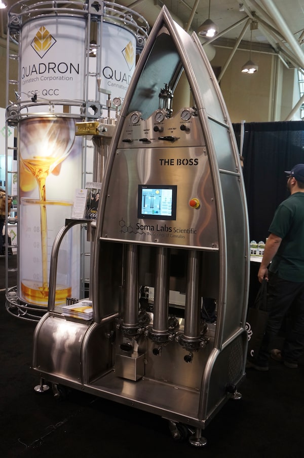 There was a lot to see and learn and touch, all of it entrepreneurial, from shining $1-million stainless steel cannabis-oil-extraction systems to the $500 wooden Cannabis Caddy, “the ideal gardening tool for personal-use growers.” Automated bud trimmers (28 pounds an hour, versus a pound an hour by hand) competed with makers of prerolled cones (a.k.a. joints and spliffs); Futurola’s desktop Knockbox II (US$4,500) can fill 1,000 cones an hour.