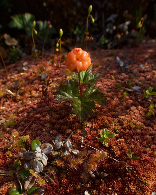 A cloudberry sprouts from sphagnum moss in the carbon rich peatland near Norman Wells, N.W.T. The plant is both a cultural icon and a food source in Canada and other Arctic nations.Merritt Turetsky