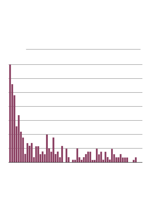 Number of deaths by day in the year after release from provincial incarceration, up to day 60, 2006–2013.