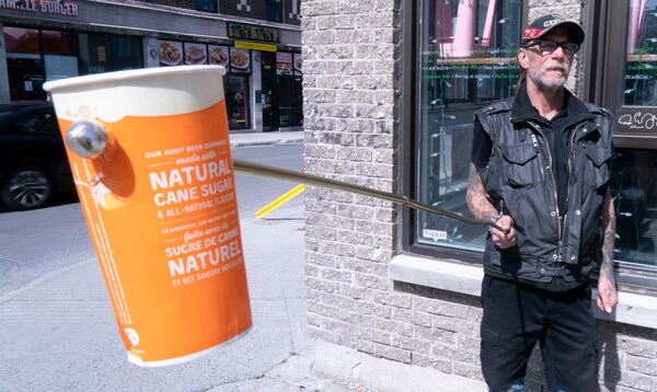 Pierre, a homeless man, uses a pole to keep his distance while panhandling in Montreal.Paul Chiasson/The Canadian Press/The Canadian Press