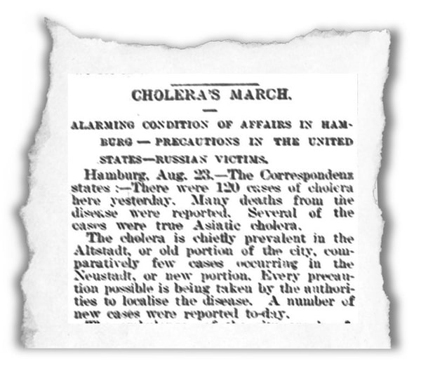 A front-page headline from The Globe on Aug. 24, 1892, notes a growing cholera outbreak in Hamburg.The Globe and Mail/The Globe and Mail