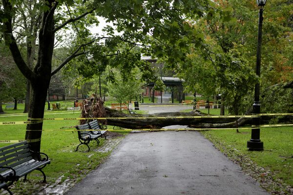 Fallen trees are seen in Saint John,, N.B. as post-tropical storm Lee approaches Maine and the Canadian Maritime provinces on Sept. 16, 2023.CHRIS DONOVAN/Reuters