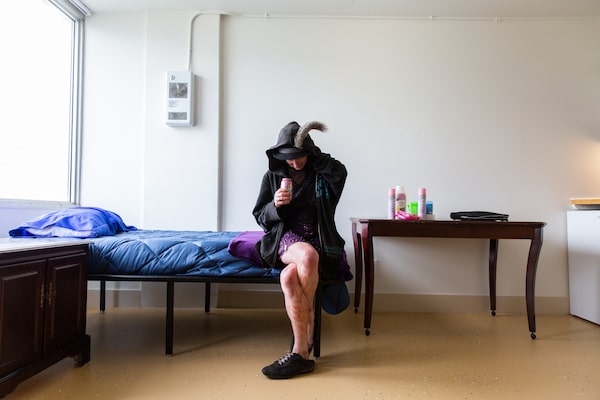 Amanda has lived in Oppenheimer Park off and on over the past two years while experiencing homelessness. She is seen here getting accustomed to her new housing in supportive housing in Vancouver on May 6, 2020.Jackie Dives / The Globe and Mai/The Globe and Mail