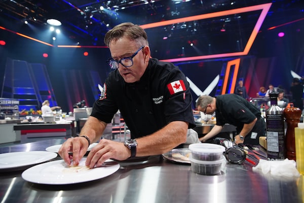 Chef Ned Bell cooks during the taping of Iron Chef Canada.geoff george