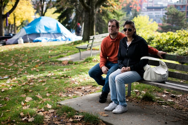 Jesse Kirkpatrick and Jackie Myerion are photographed in CRAB Park, where they lived in a tent with their two young children for a month, in Vancouver, Oct. 11, 2018.Rafal Gerszak/The Globe and Mail