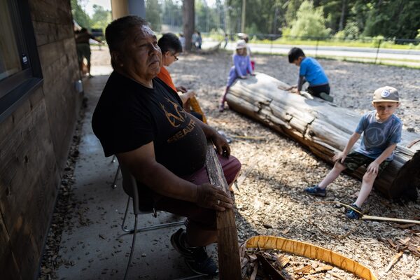 While he is in the forest with his young proteges, Mr. Seymour teaches them about the land. He shows them how to identify a bear’s claw marks on a tree, and how the careful harvesting of cedar bark, at the right time of year, won’t kill the tree. “We show them what we can use in the forest,” he said. “There’s a lot of medicine in the forest.”