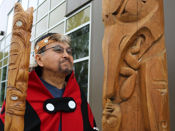 Sim’oogit Ni’isjoohl (Chief Earl Stephens) stands next to a replica of the Ni'isjoohl memorial pole in the Nisga'a Village of Laxgalts’ap, B.C.Nisga’a Nation/Supplied