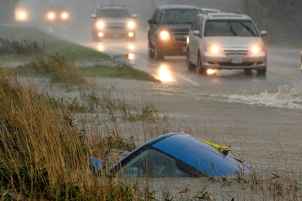 A car lies submerged in a ditch on a flooded stretch of road in Chilliwack, B.C.JENNIFER GAUTHIER/Reuters
