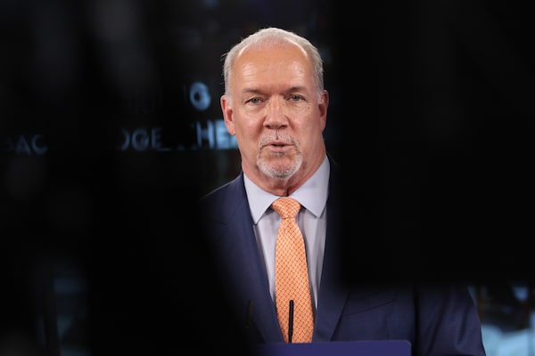 Premier John Horgan talks about B.C.'s plan to restart the province during a press conference at Legislature in Victoria, on May 25, 2021.CHAD HIPOLITO/The Canadian Press