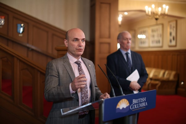 Nathan Cullen speaks after being appointed Minister of Municipal Affairs following a swearing-in ceremony at Government House, in Victoria Feb. 25, 2022. Cullen, Minister of Water, Land and Resource Stewardship, is now leading a 'reset' of the consultation process that began in January.CHAD HIPOLITO/The Canadian Press