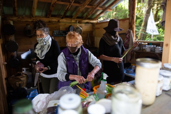 A volunteer named Cookie, centre, helps prepare meals.Jesse Winter/The Globe and Mail