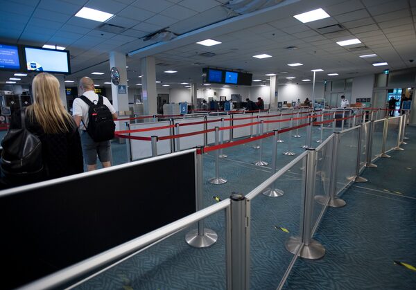 Near-empty security lines are seen at the domestic departures of Vancouver International Airport on June 9, 2020.JONATHAN HAYWARD/The Canadian Press