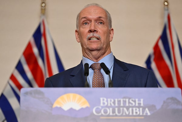 B.C. Premier John Horgan speaks to the news media at the Pinnacle Hotel in Vancouver on June 28. Mr. Horgan has announced his plans to resign in the fall.JENNIFER GAUTHIER/Reuters