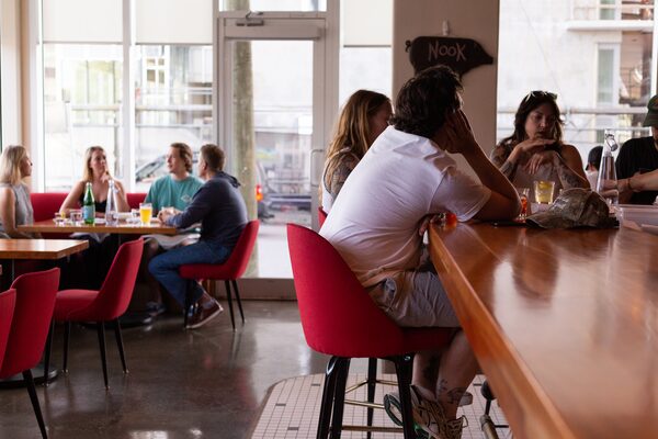 As I rubbed my hands along the fabric-upholstered bench at Nook and then reached in for a slice of pizza, it dawned on me that there are no guarantees when it comes to safety. Those fabric benches cannot be sanitized between seatings. “We’re not making any guarantees,” Mr. Jeffs says. “There are a lot of things that give me pause.”