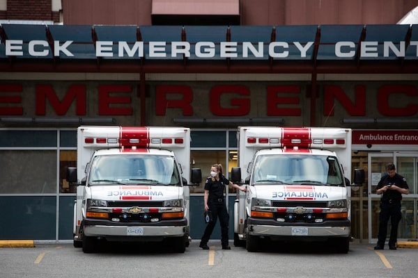 Ambulances wait outside the emergency room entrace of St. Paul's Hospital in Vancouver.Jesse Winter/The Globe and Mail