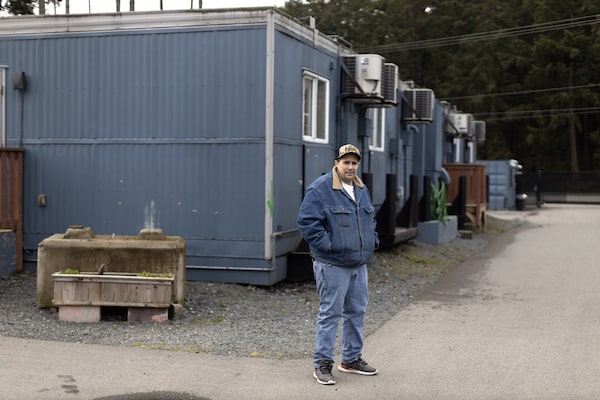 Steve Davidson is photographed outside the building where his suite is located at the Nikao temporary modular complex in Nanaimo on April 21.Rafal Gerszak/The Globe and Mail