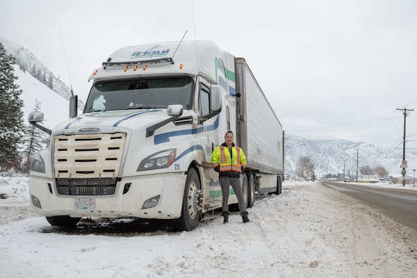 Sheri Bennett stands outside her truck in Keremeos while en route to Surrey, B.C., via the Crowsnest Highway 3, on Dec. 7.Caillum Smith/The Globe and Mail