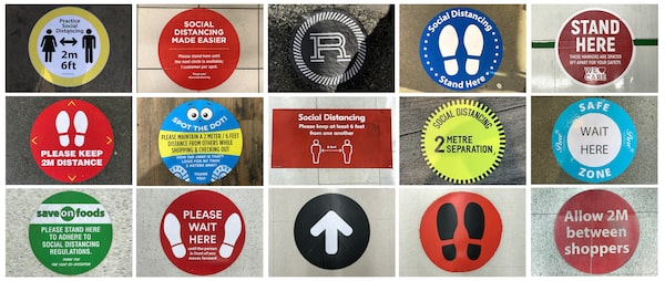 Some of the physical-distancing signs that Vancouverites saw at local businesses between May 1 and 12.Jonathan Hayward/The Canadian Press/The Canadian Press
