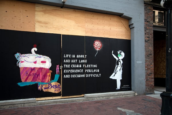 On April 23, a coronavirus-themed mural in Vancouver's Gastown neighbourhood reminds people that life is short.Taehoon Kim/The Globe and Mail/The Globe and Mail