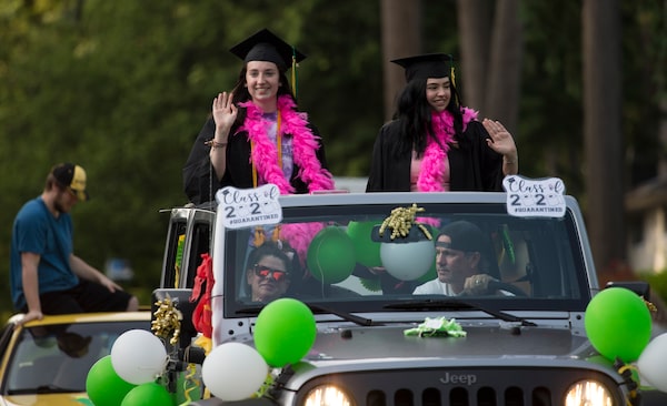 High-school graduates in North Vancouver take part in a physically distanced grad parade on June 17.Jonathan Hayward/The Canadian Press/The Canadian Press