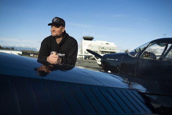 Shaun Heaps at the West Coast Flying Club hangar in Langley, B.C., on Dec. 2, 2021.Jimmy Jeong/The Globe and Mail